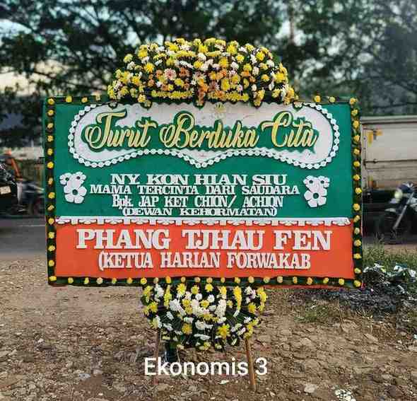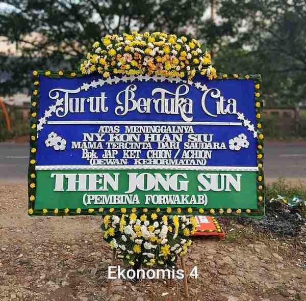 - Isi Papan: Ucapan “Turut Berduka Cita” + Nama Pengirim